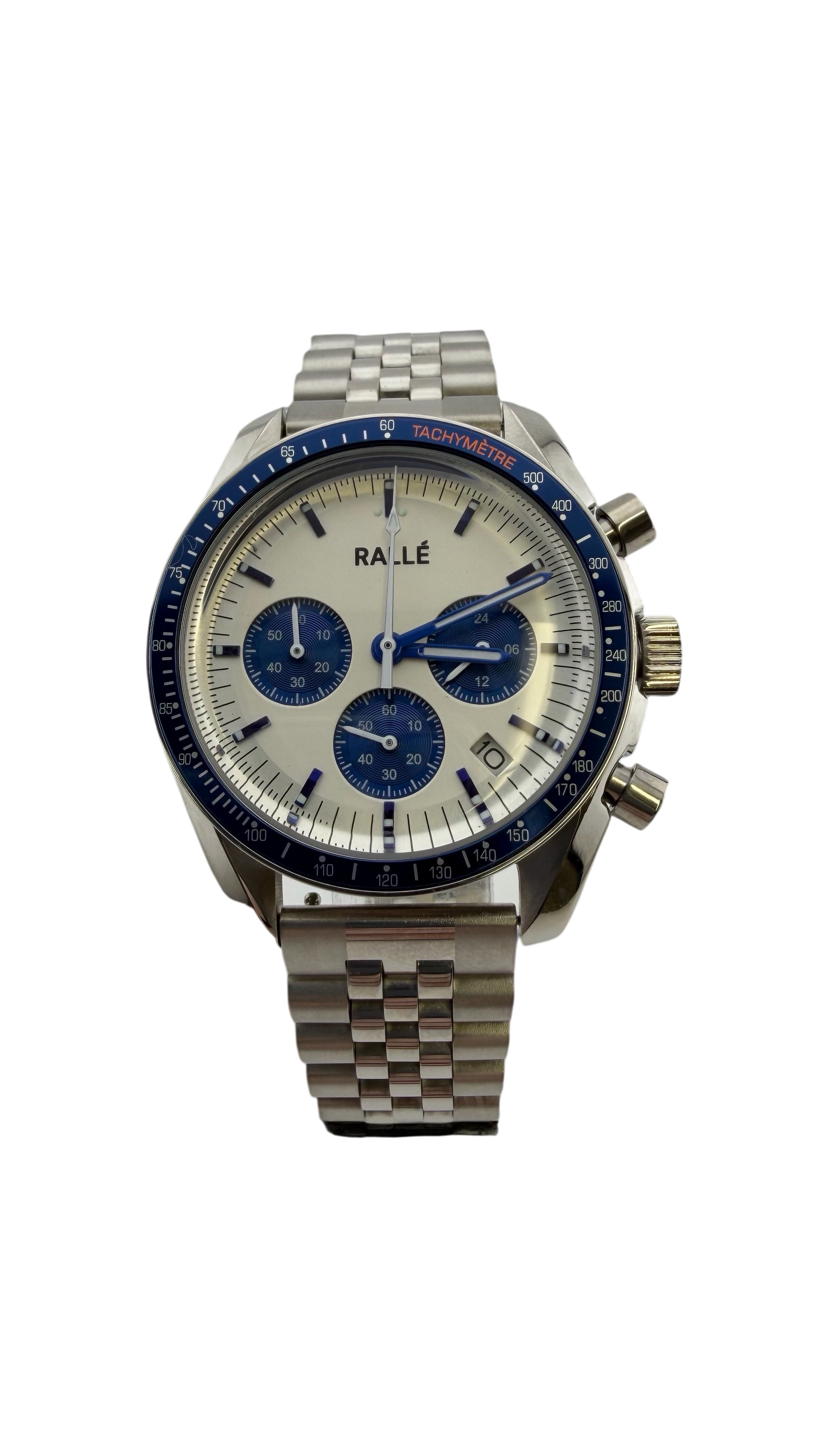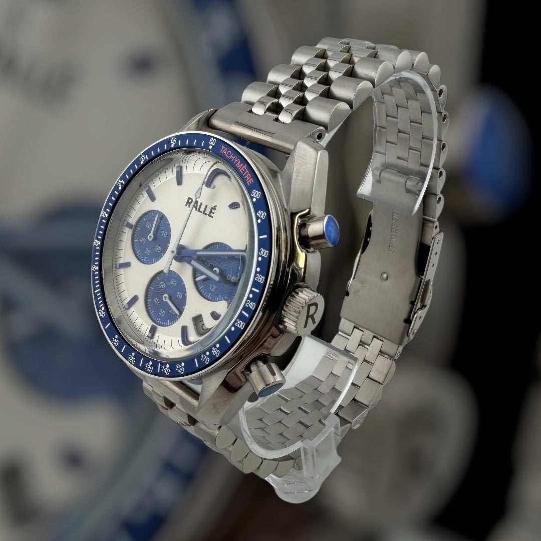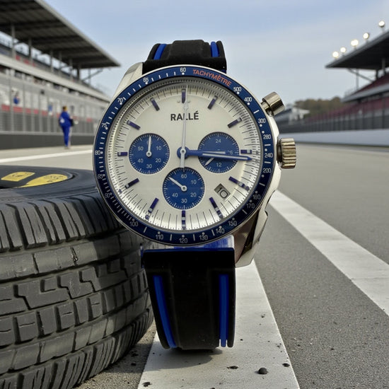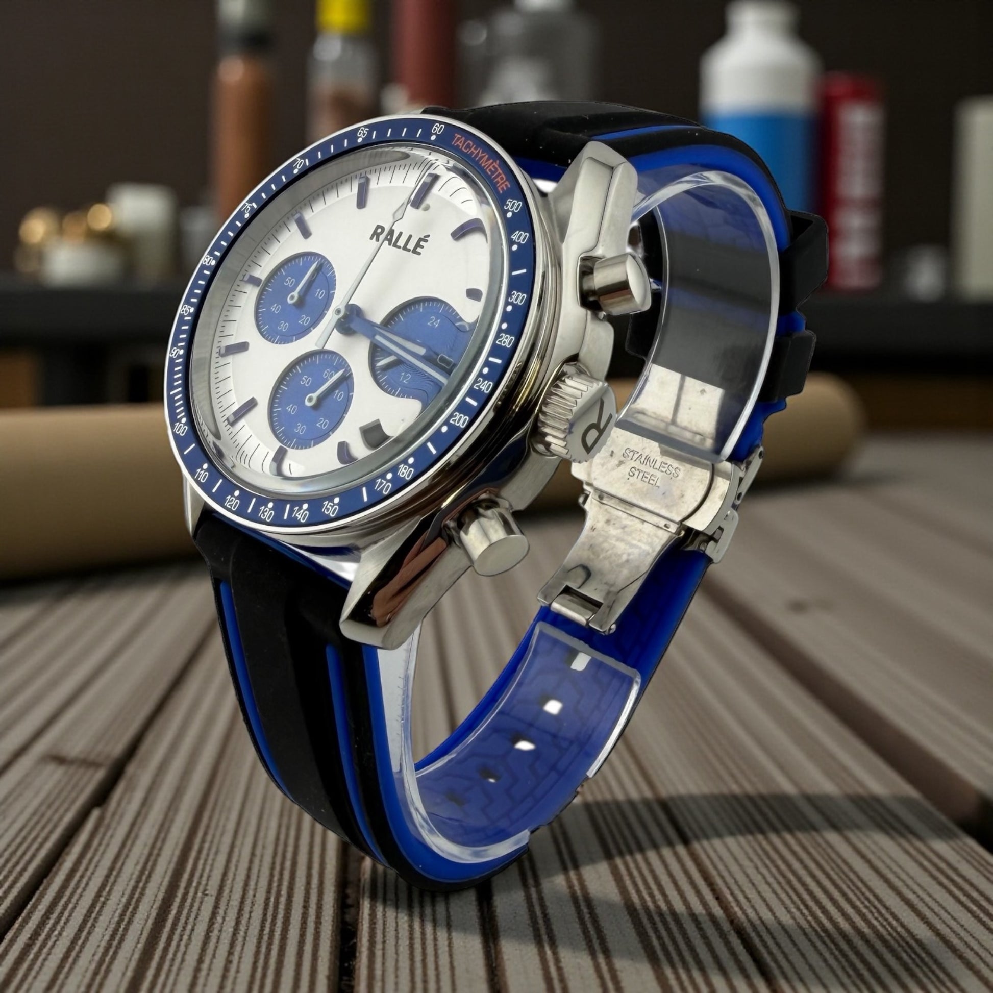 Precision meets performance in the RALLÉ “Circuit Master VK63” — a racing-inspired chronograph built for speed, style, and durability. Powered by the reliable Seiko VK63 Meca-Quartz movement, this hybrid chronograph features a mechanical stopwatch feel with quartz accuracy, offering a sweeping chronograph second hand and instant-reset functionality.