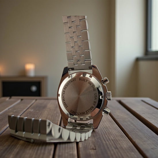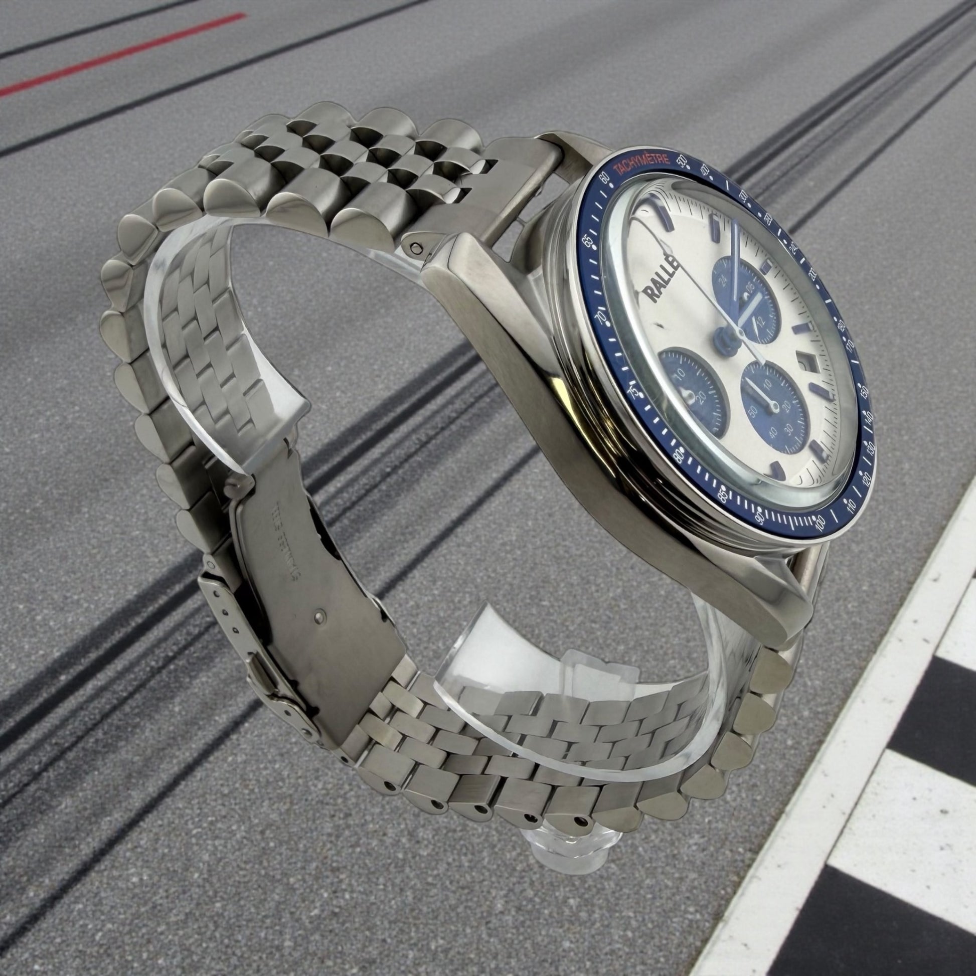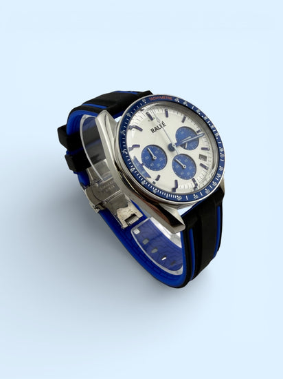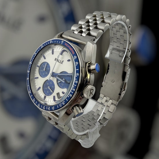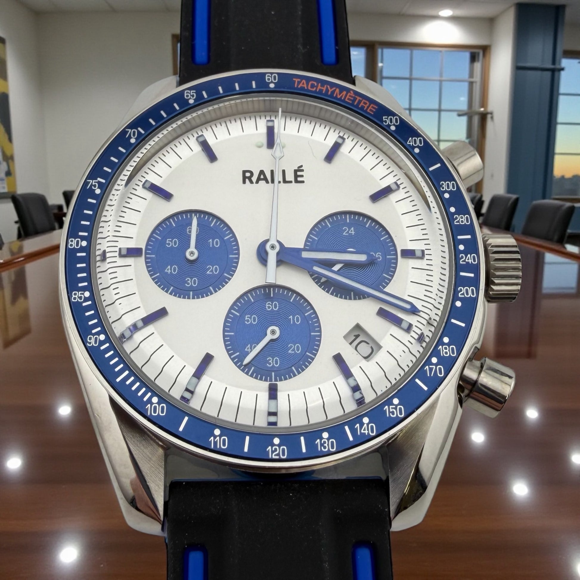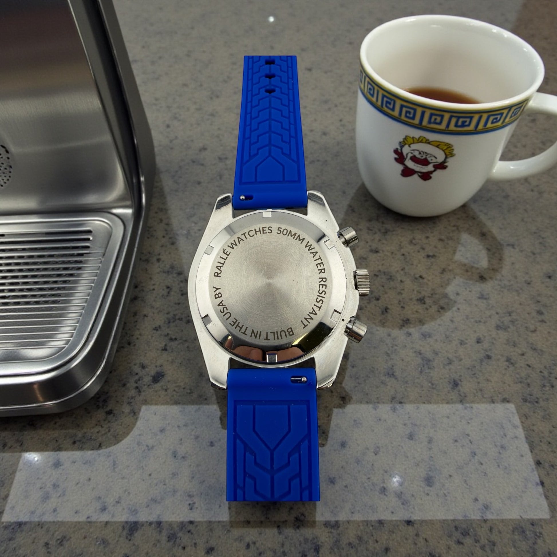 Precision meets performance in the RALLÉ “Circuit Master VK63” — a racing-inspired chronograph built for speed, style, and durability. Powered by the reliable Seiko VK63 Meca-Quartz movement, this hybrid chronograph features a mechanical stopwatch feel with quartz accuracy, offering a sweeping chronograph second hand and instant-reset functionality.