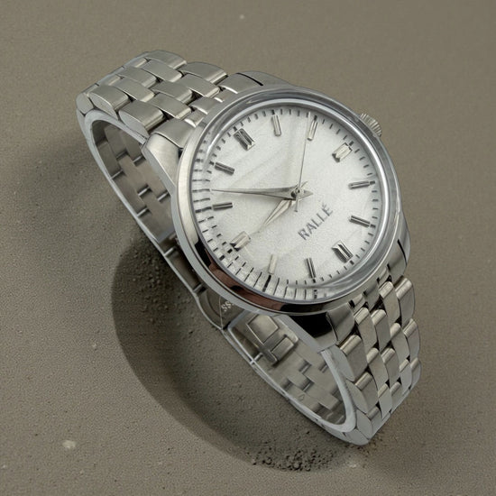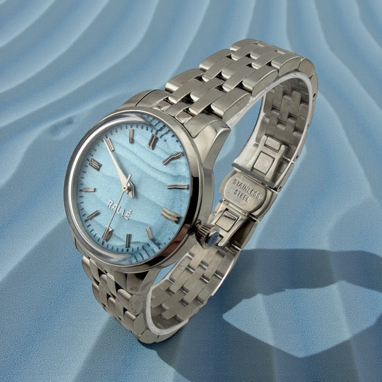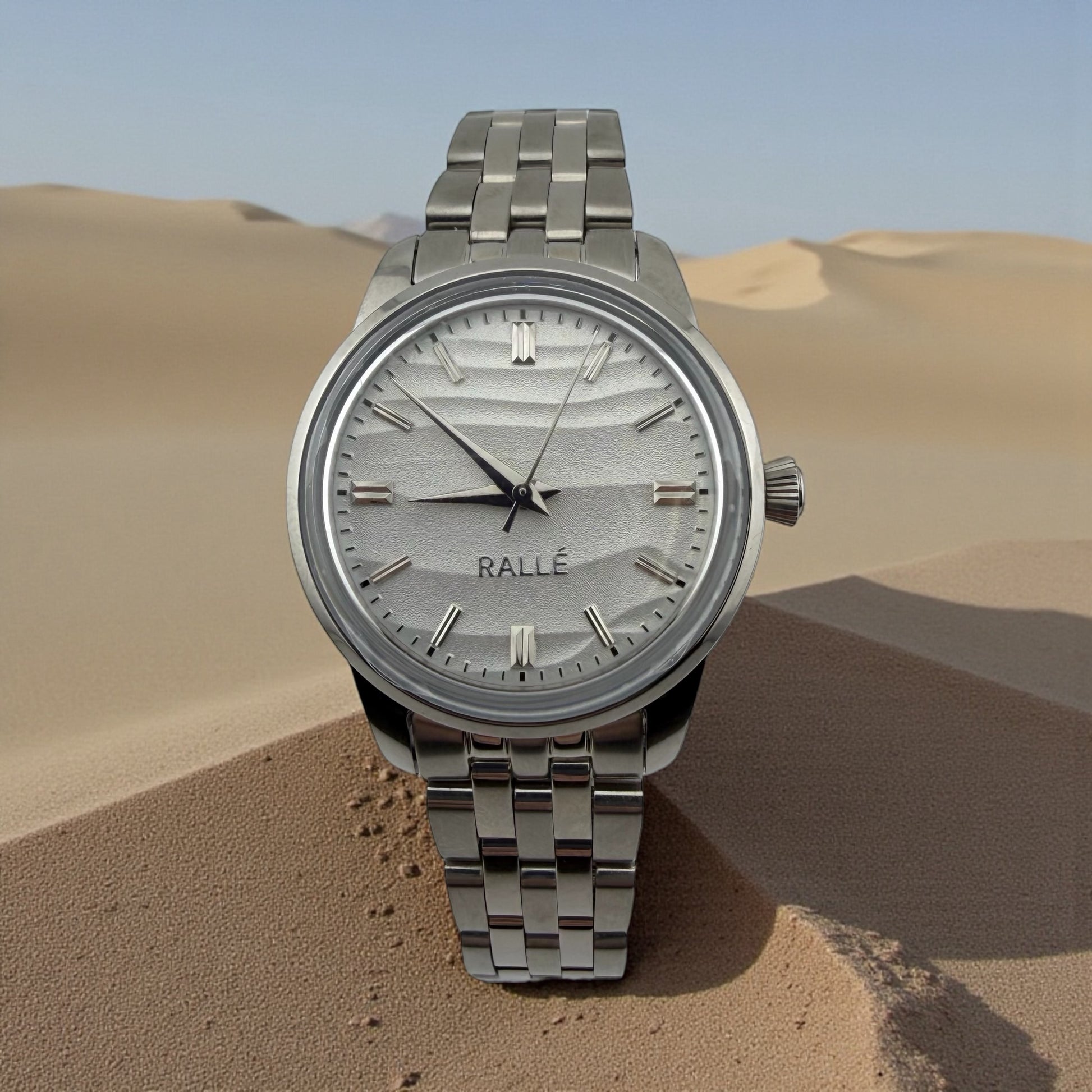 Capture the serene beauty of the dunes with the RALLÉ Desert Sands collection. Designed for the woman who appreciates both artistic flair and effortless functionality, this timepiece features a signature "wavy" dial pattern that mimics the shifting sands of a vast landscape. Whether you choose the cool serenity of the Azure Blue, the earthy warmth of the Golden Brown, or the classic brilliance of the Shimmering Silver, the Desert Sands watch is more than a timekeeper—it is a statement piece.