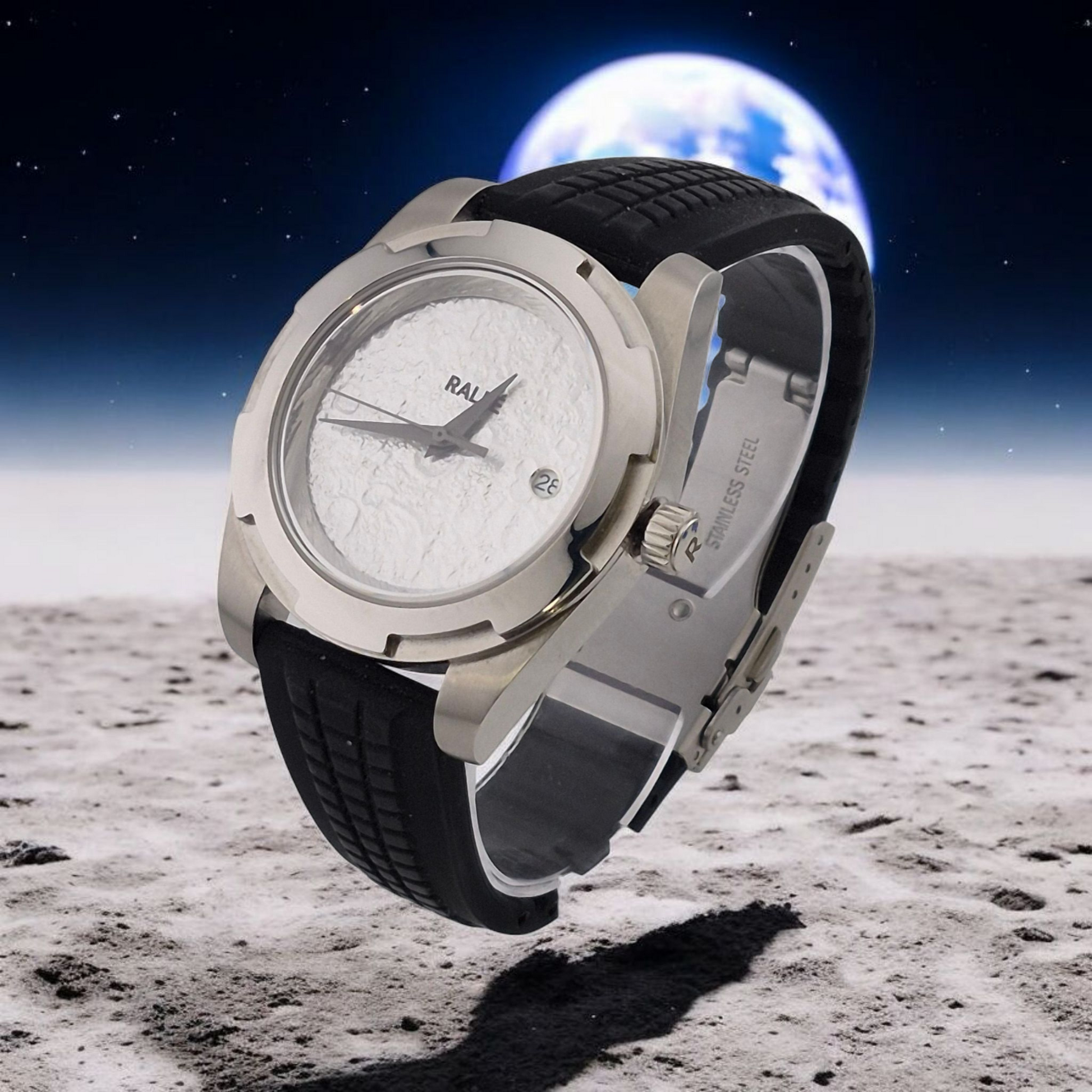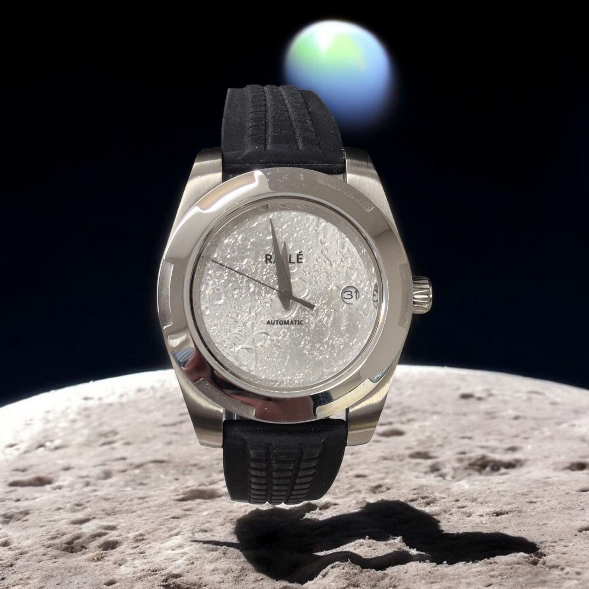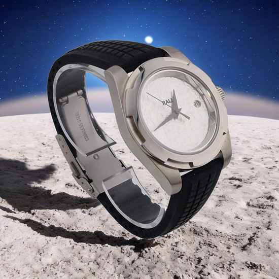 Gaze upon the enigmatic beauty of Moon Shadow, a watch that captures the mystique of the lunar surface. The dial, textured like the cratered expanse of the moon, reflects the depth and wonder of celestial exploration. Every detail, from its intricate surface to the way light dances across its ridges, evokes the silent grandeur of space.