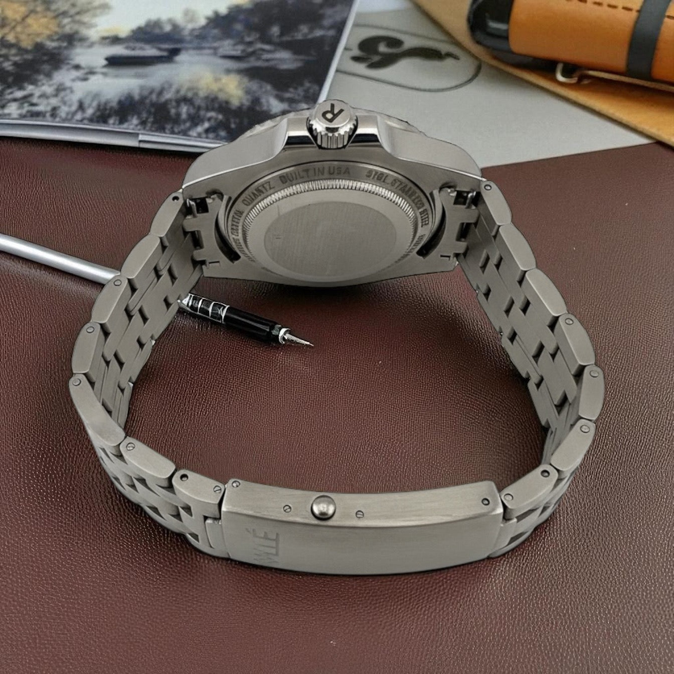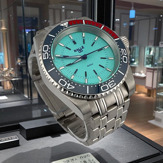 Dive into elegance with the RALLÉ Nexus Deep Water, a striking diver’s watch that blends ocean-inspired beauty with technical precision. Its captivating sky-blue dial reflects the depths of clear coastal waters, contrasted by polished markers and a graceful VH31 sweeping second-hand movement from Seiko — delivering the smooth motion usually reserved for mechanical timepieces. Crafted from 316L stainless steel, the Nexus is built for strength, balance, and refined durability.
