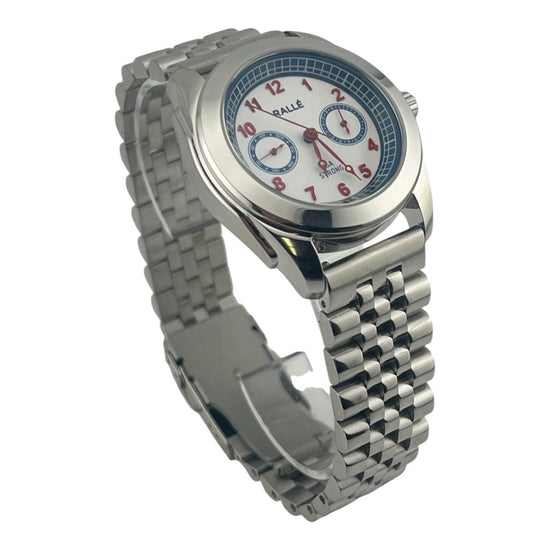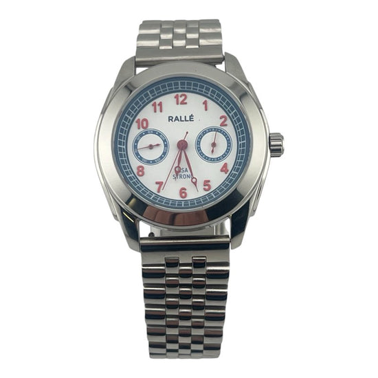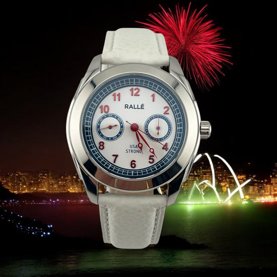 Presenting the "USA Strong" – a powerful tribute to the endurance and patriotism of the American people. This watch features a bold dial in the iconic colors of the American flag: red, white, and blue, symbolizing strength, unity, and unwavering resolve. Crafted from robust stainless steel, it embodies resilience and timeless elegance.